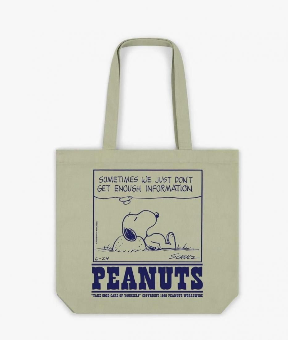 今シーズンは、1950年代から70年代にかけてのコミックのコマ割りの中から、TSPTR 独自の視点で選ばれたユーモアに溢れたスヌーピーの絵柄を使用し、”現代人への提言”とも言える言葉を、ポルトガル製の良質なコットンで仕上げたトートバッグに落とし込んでおります。